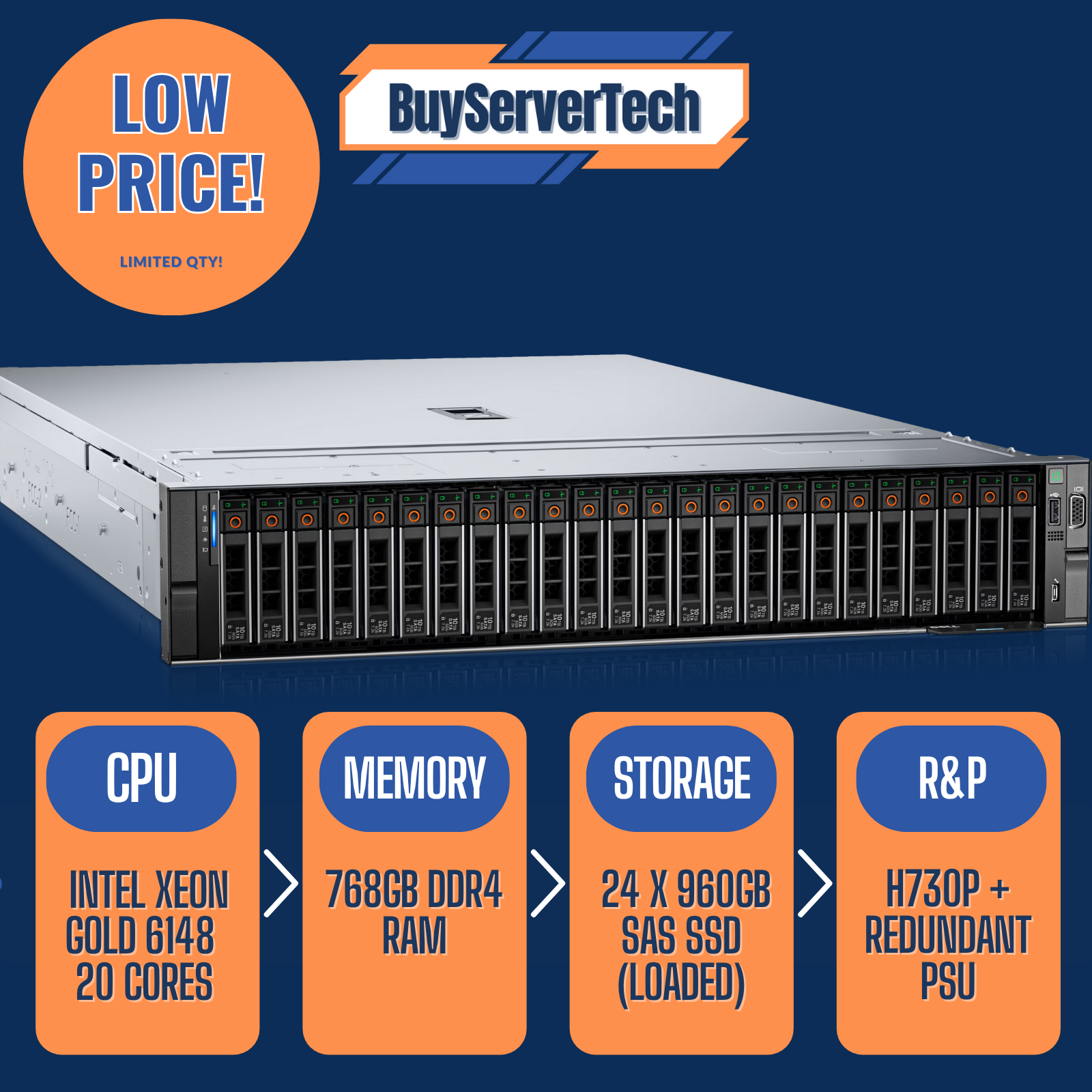 Dell PowerEdge R740XD | 2x Xeon Gold 6148 | 768GB RAM | 24TB SATA | H730P | R2