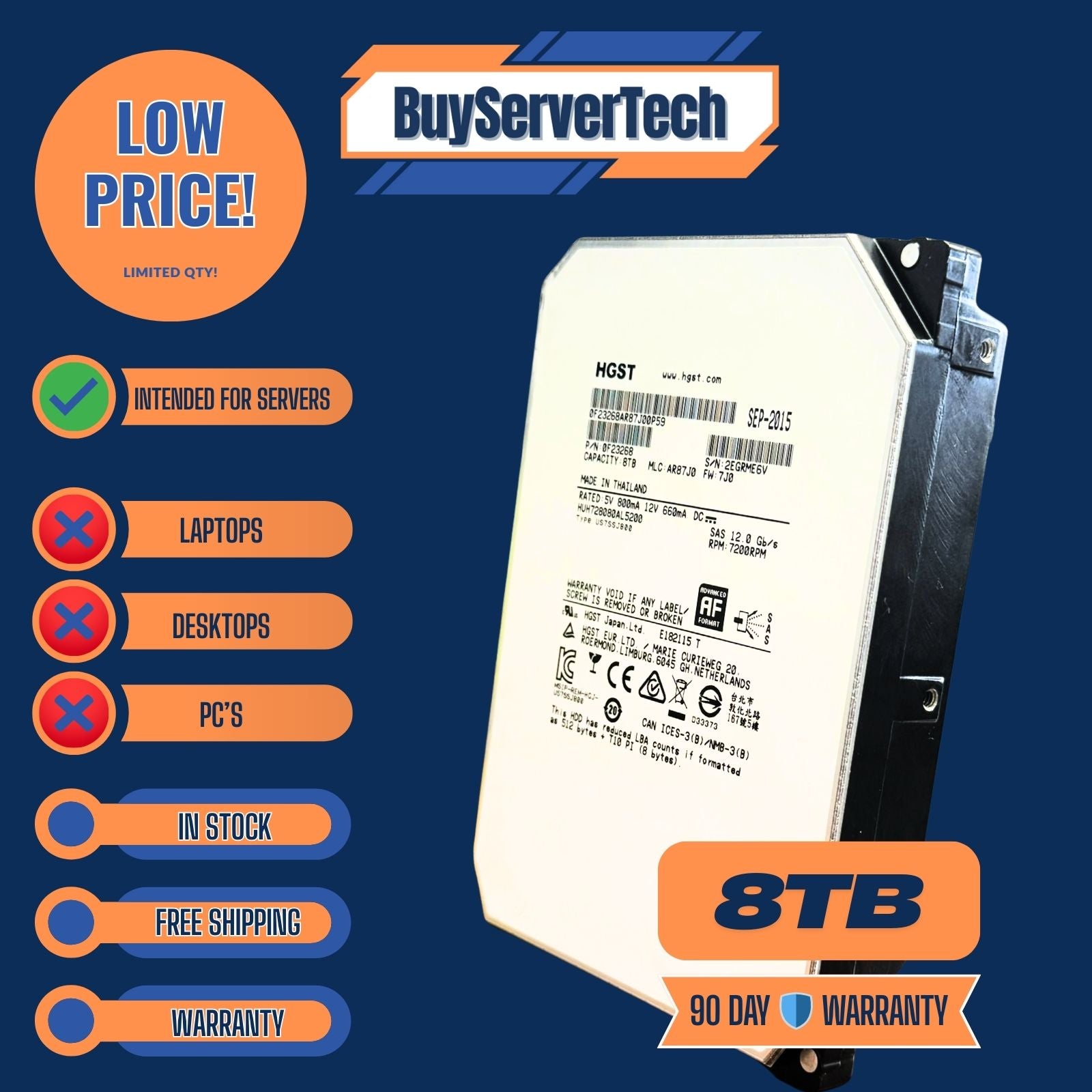 HGST 0F23268 8TB SAS 12Gb/s 3.5" HUH728080AL5200 Enterprise HDD 7200RPM 512e HDD