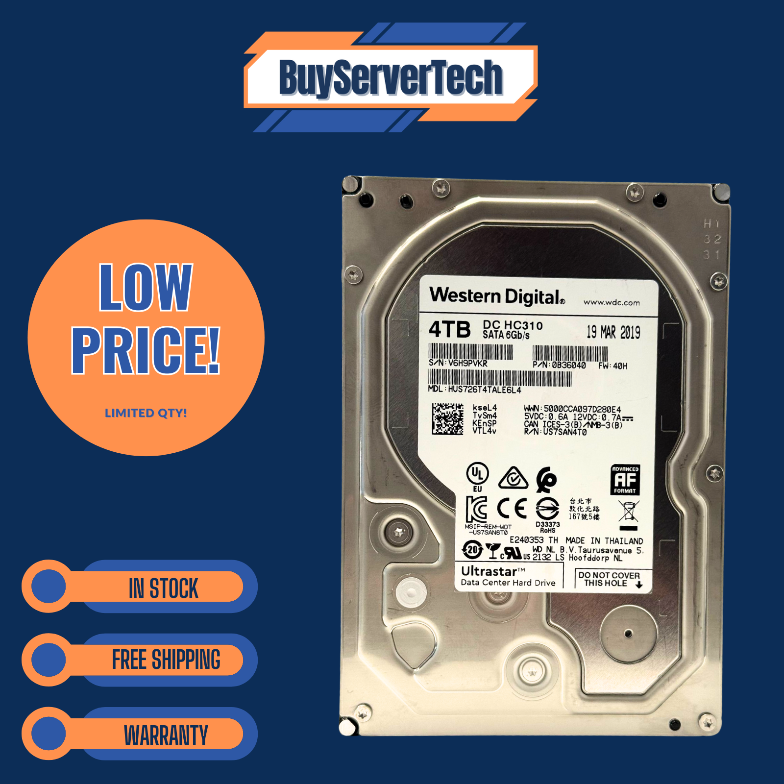 HGST Ultrastar HUS726T4TALE6L4 – 4TB 7200RPM 3.5" SATA 6Gb/s Enterprise Hard Drive – 90-Day Warranty