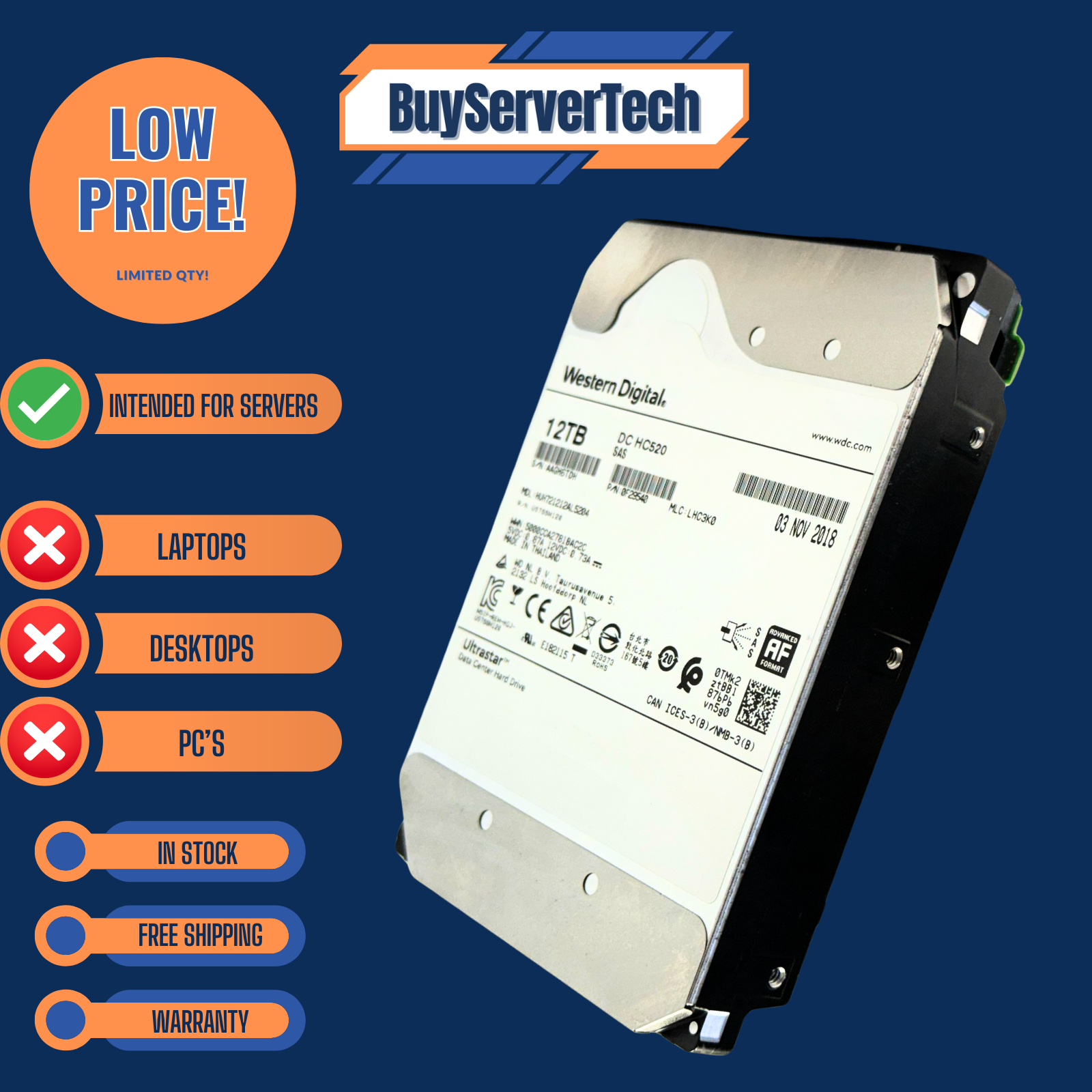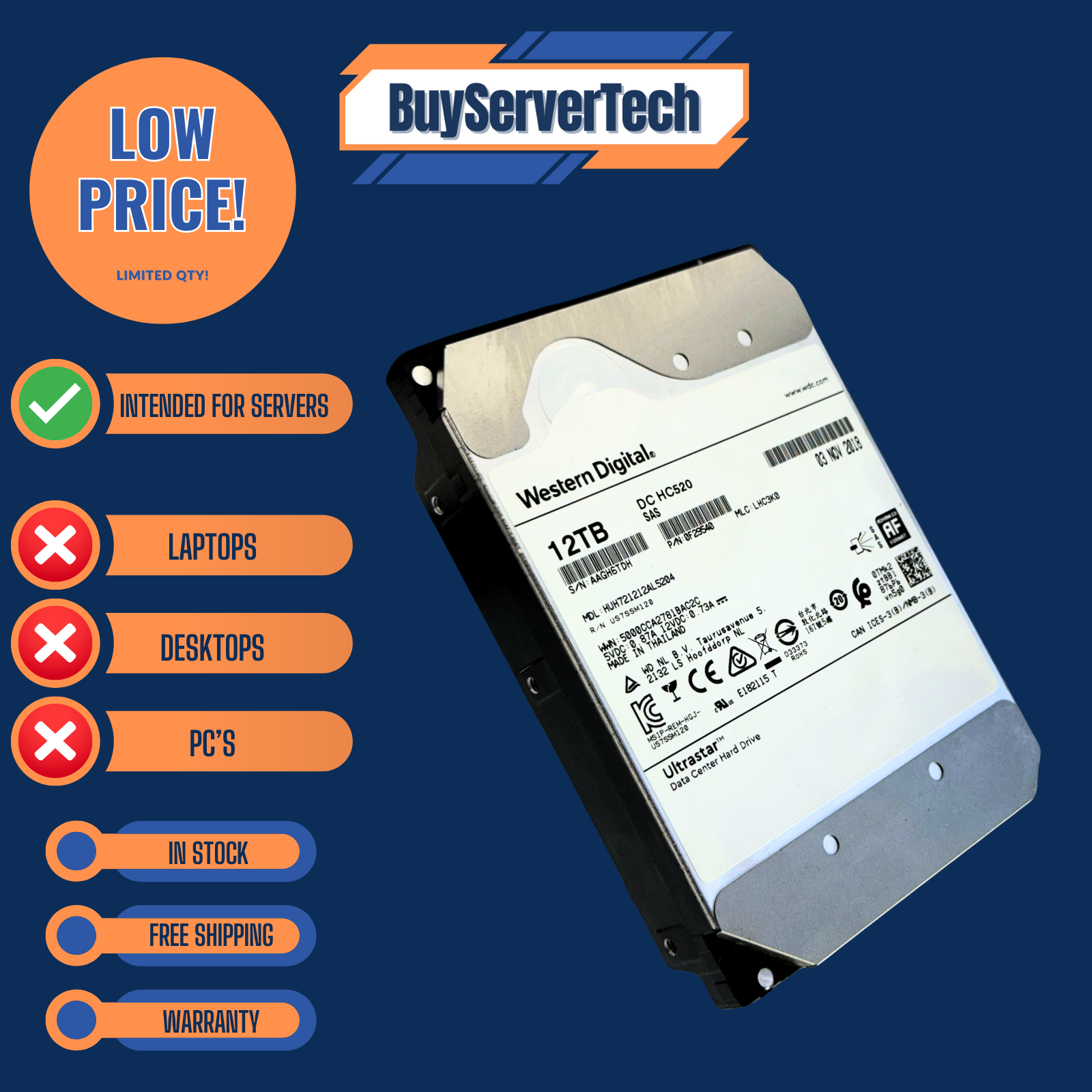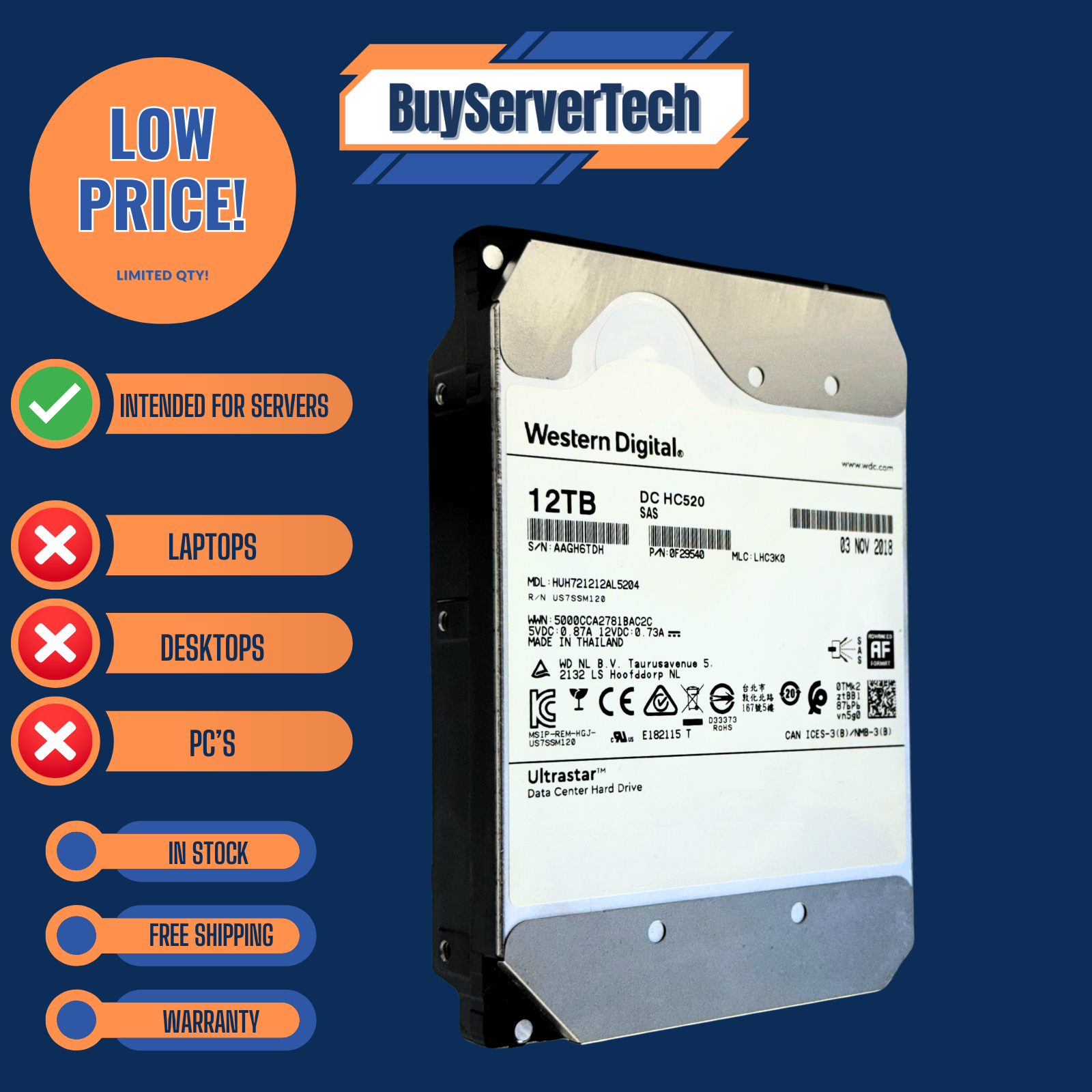 WD Ultrastar HUH721212AL5204 / HUH721212AL5200 DC HC520 12TB 7200RPM 3.5" SAS Enterprise Hard Drive – 90-Day Warranty